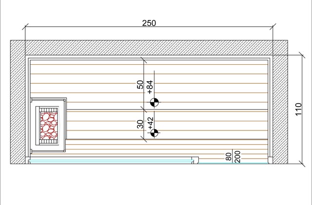 Boyutlar: Küçük bir sauna, tek kişilik veya